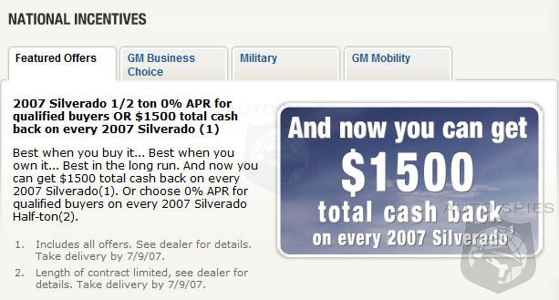 2007 Silverado 1/2 ton 0% APR for qualified buyers OR $1500 total cash back on every 2007 Silverado (1)
