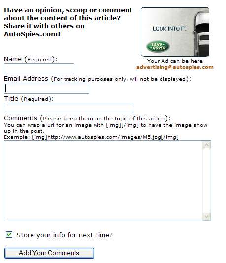 So instead of having to email 001 at feedback@autospies.com and wait a week to read the comments on an article, readers can instantly post their blogs directly into the relevant articles.