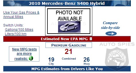 The EPA has released the fuel economy ratings for the 2010 Mercedes-Benz S400 Hybrid. The EPA predicts that S400 drivers should achieve 19 miles per gallon in the city and 26 on the highway. The S400's fuel economy is significantly better than the V8 powered S550 that only manages 14 city and 22 highway. Even the smaller C350 only gets 17 city and 25 highway. Will Mercedes S class buyers trade the performance of the V8 S550 to get the fuel economy of the S400 Hybrid? Would you?