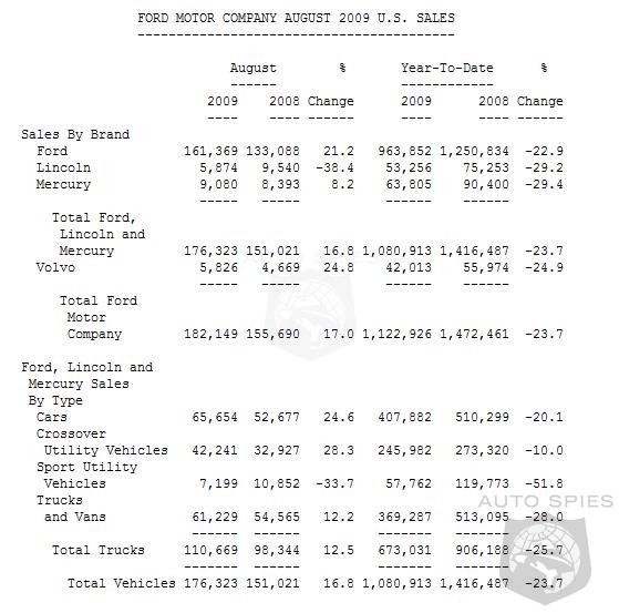 - Total Ford, Lincoln and Mercury crossover utility vehicle sales were 42,241, an August sales record and up 28 percent versus a year ago.