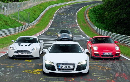 The cars that raced here are probably still ticking with heat and smelling of oil as they're being loaded onto trailers for the long trip back to garages scattered across Europe, but here we have their street-legal counterparts. Yes, the 2009 Aston Martin V12 Vantage, 2009 Audi R8 5.2 FSI, 2009 Chevrolet Corvette ZR1 and 2009 Porsche 911 GT3 are for those of us who haven't raced at the Nürburgring 24 Hours, but who dream of doing so.