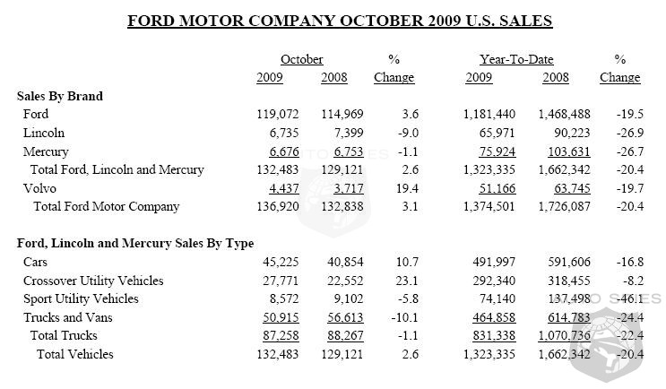 • Ford, Lincoln and Mercury October U.S. sales totaled 132,483, up 3 percent versus a year ago and 21 percent higher than September