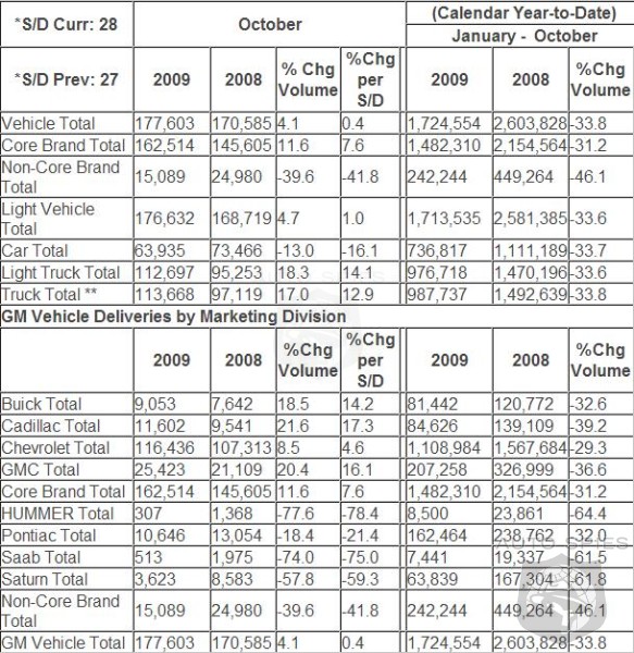 - Chevrolet, Buick, GMC and Cadillac retail sales represented 95 percent of October retail sales vs. 85 percent in October, 2008.