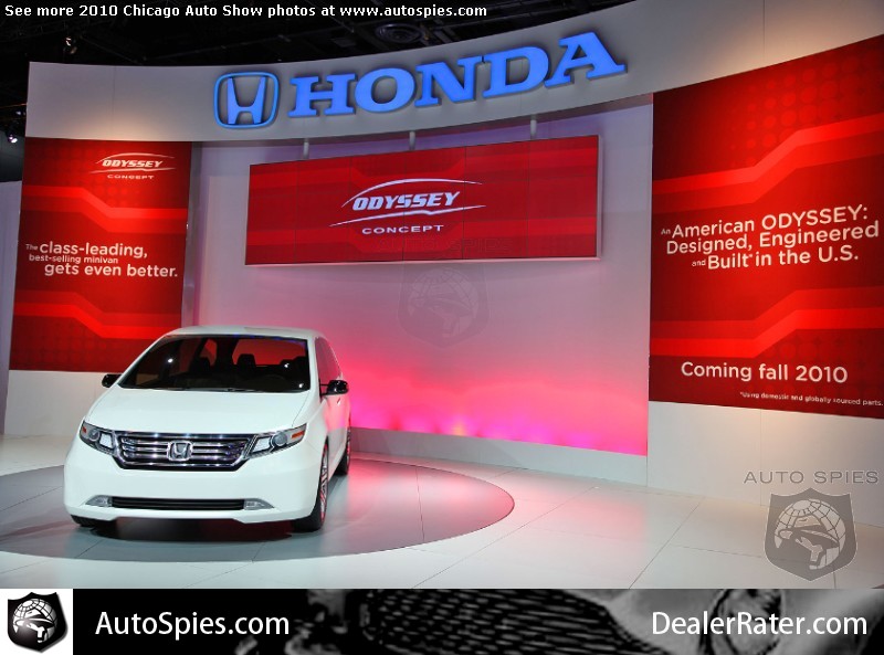 Although minivans have never been considered the creme de la creme of vehicles, you have to admit one thing: they're terrifically comfortable and they provide endless amounts of utility. With that said, it seems that companies are starting to think about the box and spruce it up a bit. What's this entail? The all-new 2011 Toyota Sienna has a sport trim. Sport? Minivan? Whatever, Edmunds has said that this is "...maybe how all minivans should drive."So, if that gives us any hint at how good it is, Honda has to step up its game, big time.Now Honda has unveiled a new Odyssey concept and it looks pretty good. Much better than their other offerings. Sort of weird to think their minivan is their best looking new car at the moment.The most interesting thing about the concept is its "reverse kink." It is a much better interpretation than the Hyundai Genesis Coupe, which seems to come together quite awkwardly.More importantly, what are your opinions on the latest van from Honda? Two thumbs up? Two thumbs down?Let us know in the comments below.Remember, spy before you buy! 2010 Chicago Auto Show Photo Gallery 2010 Chicago Auto Show Photo Gallery2011 BMW 335is Photo Gallery2011 BMW 5-Series Photo Gallery2010 Detroit Auto Show Photo GalleryAutoSpies.com Photo GalleriesIf you want to see your photos running on our homepage photo ticker, be sure to upload your photos on the go by sending them to Mobile@AutoSpies.com Share on Facebook