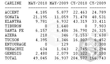 Hyundai Motor America today announced sales of 49,045 vehicles in May, a 33 percent increase versus May 2009 and an all-time May sales record for Hyundai. The all-new Sonata and Tucson saw sales soar 92 percent and 227 percent, respectively, over last May. This marks the seventeenth consecutive month of year-over-year retail market share gains for Hyundai and the best share month this year. Year to date, Hyundai sales are up 23 percent compared with 2009.