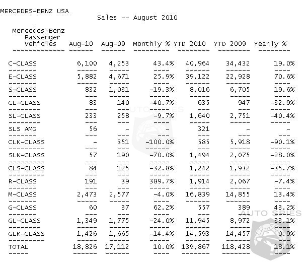 Separately, through the Mercedes-Benz Certified Pre-Owned (MBCPO) program, MBUSA sold 6,488 vehicles in August, up 2.7% compared to August 2009 sales of 6,315 vehicles. Year-to-date sales for the MBCPO program were 54,720 - a 6 % increase over 2009 year-to-date sales (51,410 vehicles) during the same timeframe.