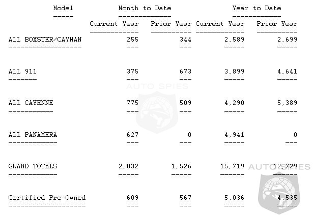 So far in 2010, Porsche's overall year-to-date sales are 15,719 versus last year when they were 12,729, an increase of 23 percent.