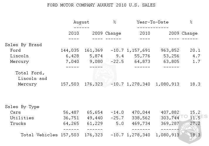 Ford, Lincoln and Mercury dealers delivered 157,503 new vehicles in August, down 11 percent versus a year ago, when Ford outpaced the industry during the "Cash for Clunkers" sales program.
