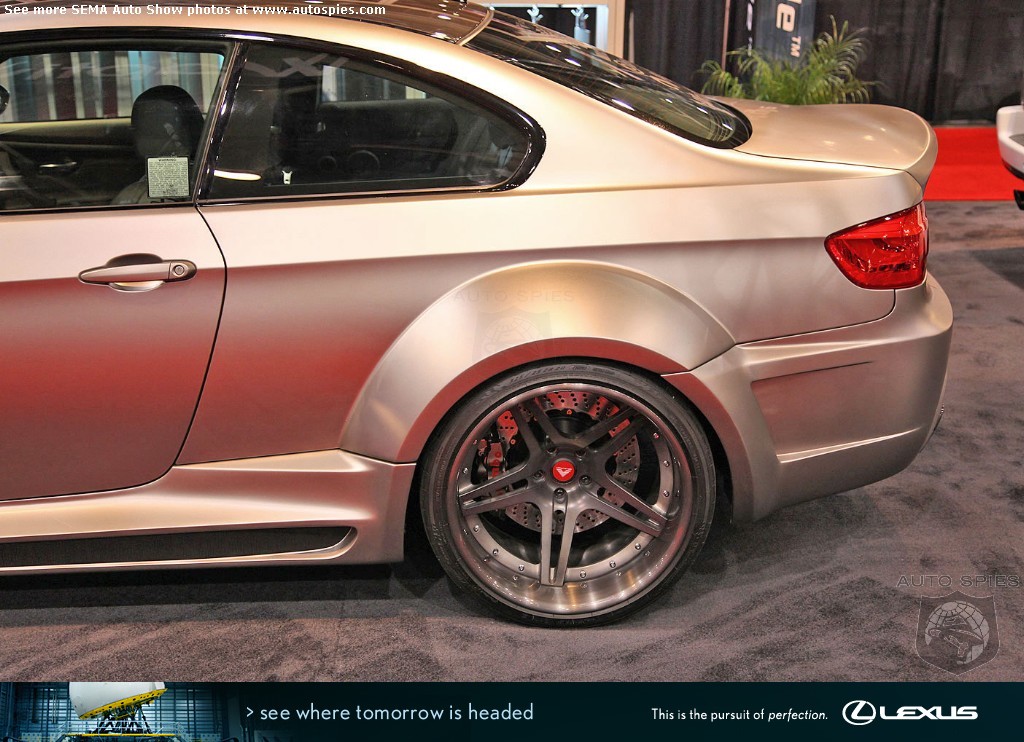 Now when you take several powerful ingredients and mix them, you get something akin to gunpowder. That's what happens when you take a BMW M3, Vorsteiner and Active Autowerke, and bring them all together.You get a beastly BMW M3 with a supercharger.This particular car boasts a stage two Active Autowerke supercharger putting down 630 horsepower. Additionally, there is a plethora of other modifications that are WAY too extensive to get into right this second. If you're intrigued by this project M3, check out the entire build process on Luxury4play.And if you want to scope out the best photos from the SEMA Auto Show, you'll scroll down below to gaze at this M3's bad-ass nature. Look at those blistered fender flares!**For a look at the 2010 SEMA Auto Show, check out the BEST images here on AutoSpies. Over 560 images live NOW!Lexus is a proud sponsor of the 2010 SEMA Auto Show Photo Gallery2010 SEMA Auto Show Photo Gallery 2010 SEMA Auto Show Photo GallerySEMA Auto Show Preview Photo Gallery2011 Chevrolet Volt Photo Gallery2012 Saab 9-4X Photo Gallery2011 Shelby GT500 Photo GalleryAutoSpies.com Photo GalleriesIf you want to see your photos running on our homepage photo ticker, be sure to upload your photos on the go by sending them to Mobile@AutoSpies.com Share on Facebook