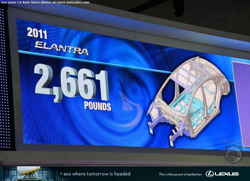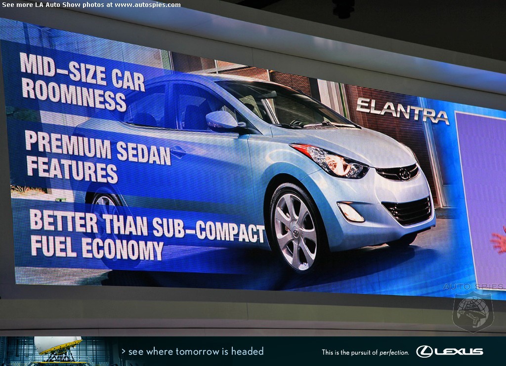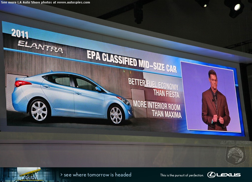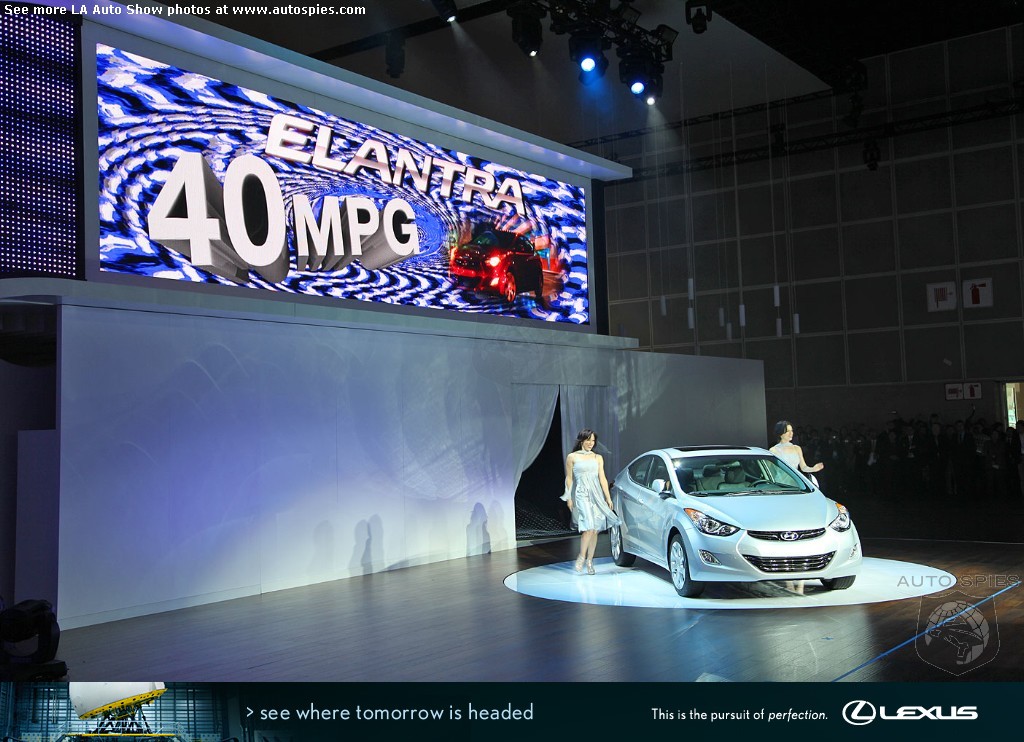 Even after an exhausting day one, you knew that Agent 001 couldn't have been done just yet. Even after seeing the lovely mermaids from last night, 001 hit the ground running for another big day. Sure there were plenty of nice cars on the show floor today but one, in particular, stood out from the bunch. That was the 2011 Hyundai Elantra. And that's because it does so much, so well.Not only is it priced at an unbelievable price of $14,830 BUT it also has more interior volume than a Nissan Maxima and Volkswagen CC, has premium features that are found on more expensive vehicles, and gets 29 city, 40 highway mpg -- which is hybrid-like fuel economy. All of this while costing LESS than a Ford Fiesta!001 tells me this was the highlight of day two.Are you still not convinced? Check out the fantastic images Agent 001 shot that detail why the Hyundai Elantra has just changed the game in the compact car class.**Stay tuned to AutoSpies as photos from the 2010 Los Angeles Auto Show pour in. Agent001's trigger finger has been itchin' for LALexus is a proud sponsor of the AutoSpies 2010 Los Angeles Auto Show photo gallery.2010 LA Auto Show Photo Gallery2010 LA Auto Show Photo Gallery2011 Chrysler Group Photo Gallery2010 LA Auto Show Preview Photo Gallery2010 SEMA Auto Show Photo GallerySEMA Auto Show Preview Photo GalleryAutoSpies.com Photo GalleriesIf you want to see your photos running on our homepage photo ticker, be sure to upload your photos on the go by sending them to Mobile@AutoSpies.com Share on Facebook