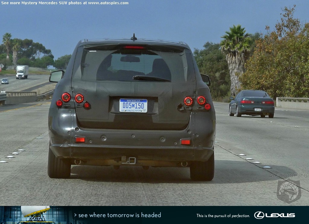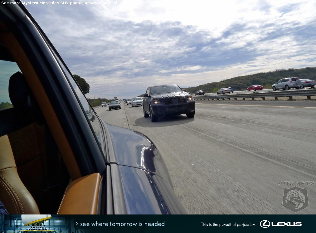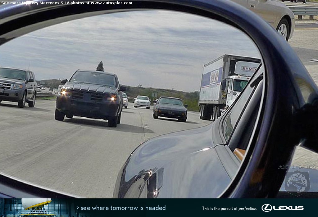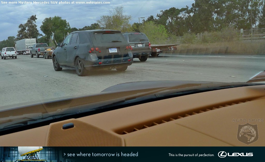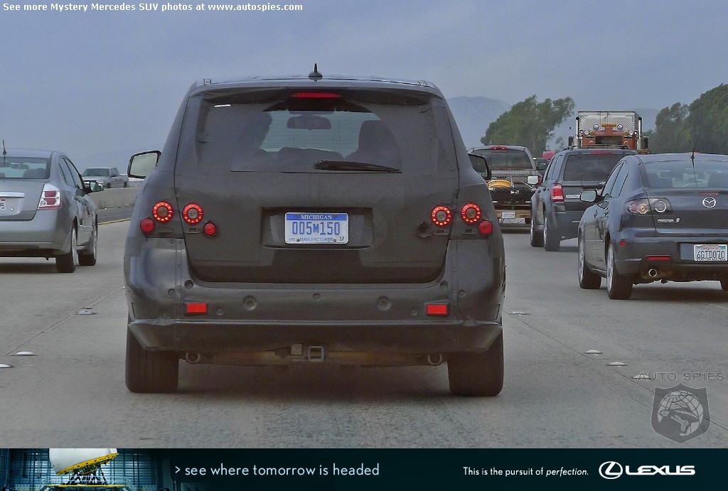 As I've said many times before I'm a big believer that God loves Auto Spies because being in the right place at the right time as many times as the Agents are cannot be just coincidence.Take today for example.I was supposed to leave for Newport Beach around 8:30am this morning and I'm usually up and ready by then. But for some reason today, I just couldn't get out of bed and going until around 10:30AM.It turns out my angel was looking out for me by sprinkling a little extra sleeping dust in my eyes because as I headed up north from San Diego, low and behold a big fat Christmas present came driving right along side of me.And just like in Animal House when the Playboy Bunny came flying in the window onto the boys bed, the first words I thought of were- THANK YOU GOD! So as always, this spy had his camera armed and ready and got these great shots for the AutoSpies.com faithful.As I looked at it, I first thought it was the next GL but the more I examined the body, I was thinking it could be a bigger next-gen ML OR if the rear third was a fake roof maybe even a BMW X6 competitor.What say you Spies?Discuss... Mystery Mercedes SUV Photo GalleryMystery Mercedes SUV Photo Gallery2011 Hyundai Elantra Photo Gallery2012 Audi A6 Photo GalleryPorsche Carrera 911 S Mark 2 Photo Gallery 2010 Black Friday Photo Gallery2012 BMW 6-Series Convertible Photo GalleryAutoSpies.com Photo GalleriesIf you want to see your photos running on our homepage photo ticker, be sure to upload your photos on the go by sending them to Mobile@AutoSpies.com Share on Facebook