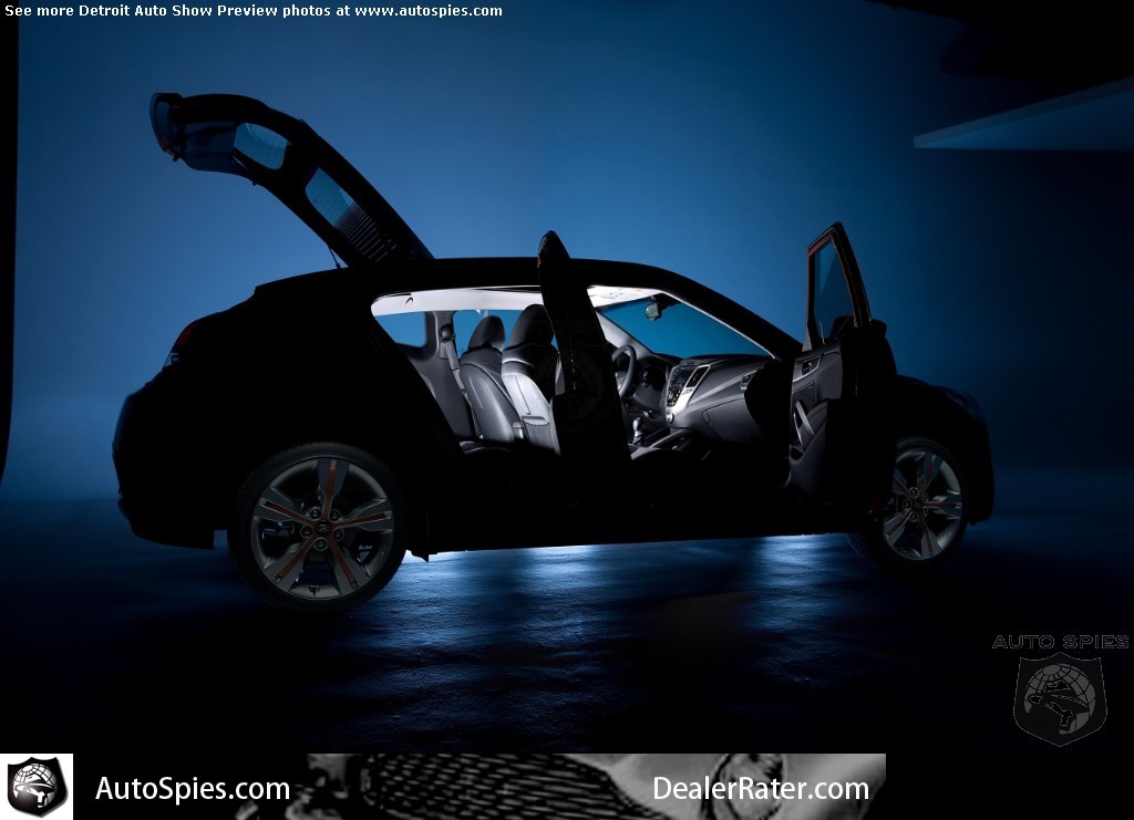 The latest in Hyundai's newfound legacy is the Veloster, which is suppose to be a sporty coupe. But as you can see in teaser image down below, there are a couple of things that we can immediately see. Although it is a "Coupe," it will feature a third door on the passenger side. Whether or not its design will remain symmetrical cannot be determined from the tease. Additionally, like some modern-day hybrids, the Veloster's hatch will have split glass.