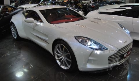 Alain Class Motors in Dubai, UAE is offering a second hand Aston Martin One-77. The white supercar is parked inside the showroom of the Arabian car company. The mileage is zero. The vehicle is parked in between Lamborghinis, Ferraris, Bentleys, Rolls-Royce Phantoms and a Mercedes-Benz SL65 AMG Black Series.