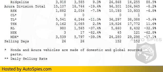Acura Division posted record TSX Sport Sedan sales and steady TL performance luxury sedan sales during June, while several new 2007 models