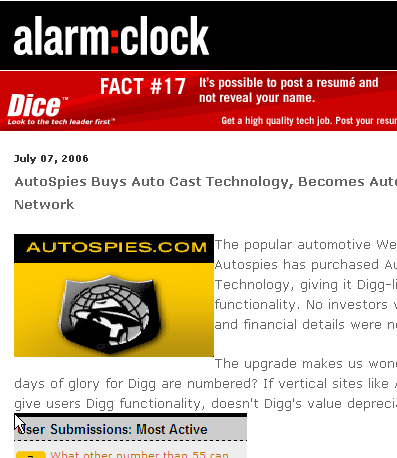 They give the new AutoSpies.com (3.0? 4.0?) a fair comparison to digg.com and raise a good point about covering verticals. Will a catch all site like the new digg.com and Netscape/AOL be the answer, or will other sites with specialties be able to pull from the catch-alls?