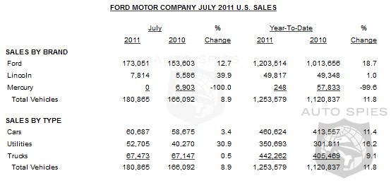 Ford's July sales totaled 180,865, up 9 percent versus a year ago – driven by 13 percent higher Ford brand sales and 40 percent higher sales for Lincoln.