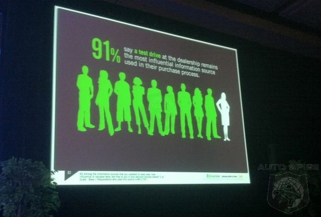 However, I received this image from a JD Power internet dealer roundtable, which featured a slide that said "91% say a test drive at the dealership remains the most influential information source used in their purchase process."