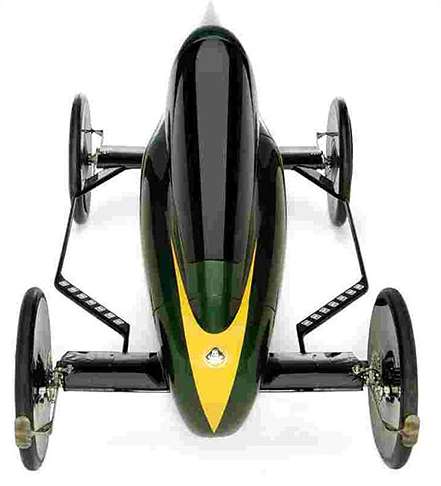 Constructed from carbon fibre and designed in a wind tunnel, the 119c is vastly more advanced than the car you and your dad built out of spare lumber. Already a record holder, the diminutive monocoque takes Lotus’ longtime motto of “performance through light weight” to a completely new level. Successor to the original “Roadster” Lotus soapbox car, the enclosed 119c uses such technology as movable tungsten ballast and small 20-inch wheels mounted on ultra-low friction bearings to gain a competitive edge over it’s competitors from the likes of Lola, Ford, and various academic institutions.