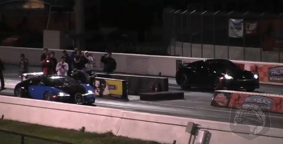 Down below we have two titans, in their own respect, going head-to-head on the drag strip. A Nissan GT-R vs. a Bugatti Veyron.