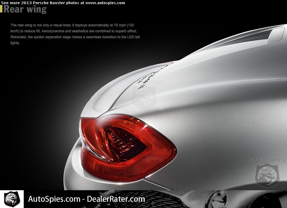 This week we had the chance to see the 2013 Porsche Boxster finally unveiled. One thing strikes us weird, though.Why did Porsche wait until the end of the 2012 Detroit Auto Show to make the news available? Really weird.Anyhow, since running the original photos that were made public, there was an enormous response from YOU -- our tasteful readers -- that the new Boxster is really an exceptional looking vehicle. Well, I can't disagree, it really is one nice looking piece.I really have no clue how anyone is going to be even able to shake a stick at this product given it's refreshed cabin and already amazing driving dynamics. Good luck, boys!That said, we've got MORE shots for you to indulge in. 150, to be exact.Enjoy!
