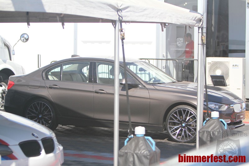 At the 50th Anniversary of the Rolex 24 At Daytona BMW was showing off a very unique F30 328i. This TwinPowered inline 4 cylinder powered 3 series sports the optional style 404 cross spoke 20" wheels shod in 225/35/R20 front and 255/30/R20 tires looking more like rubber bands wrapped around the rims then actual tires.