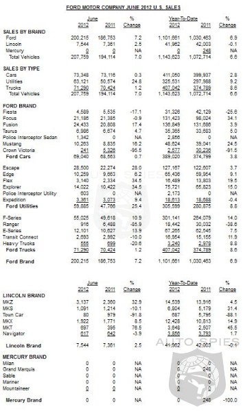 "June was a good month for Ford and a particularly strong month for vehicles like Escape, Fusion, Explorer and F-Series," said Ken Czubay, Ford vice president, U.S. Marketing, Sales and Service. "The new 2013 Escape also is off to a very strong start, with vehicles selling on dealer lots in less than five days – even topping the strong start of the new Explorer in 2010."