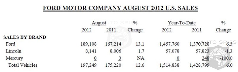Sales of Ford trucks increased 6 percent in August. America’s best-selling vehicle, the Ford F-Series, reported sales of 58,201 vehicles – 19 percent increase year-over-year – for its 13th straight month of sales increases and its best sales month of 2012. EcoBoost-equipped F-150s surpassed the 200,000 sales threshold in August.