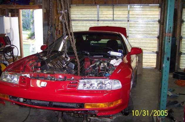 First off just let me say this Dont ever Jump into a project like this if you know its over your head and your homework/research you did involved speculations in your head. Which well,.... I did. I Jumped into this project before I even knew about these other great projects by Whitesol and Racecity_usa. I did happen to ponder across them a month or so after I jumped into my project. I actually started a thread too but... Lack of me posting progress because of me being away for work, had it removed I think. I actually like racecity's and whitesol's Ideas and I think theres another one or two floating around that I am not saying. How they retained there vehicles in the fact that trying to only use honda manufactured parts. Where as I mostly didn't cause well I could not think of any transmissions and such that would latch onto the H22a1 from my car allowing me to turn it without having expensive plates and such fabricated(which I dont even know how expensive it would be, yet more examples pointing to my lack of research.) But, there Ideas are unique as is mine which makes these projects and stuff well, unique and special to each individuals tastes. My Idea pretty much evolved from when I removed the engine to rebuild it after blowing a piston with to much boost 16.7# to be honest. There was a chevy 350ci motor sitting on the floor and I lowered it in just cause well I guess I was curious and well... I will show you the rest. The car is not done really yet, but its getting closer and closer. I'll pretty much post up new stuff every night/ day if I can until I catch up which will be no time soon! I am hoping though to be finishing up by the end of this summer if not sooner as I will be attending college this year. Yes, I said college. I am only 20, I kinda of took a break from school and I honestly think it has helped alot being out in the workforce for 2 years realizing that hey maybe I want to get and education and have a good job. I've done almost all the work myself and have tried to be as professional as I can. Ive honestly learned so much from doing this not just about cars but other things needed in life. My dad helps me out and gives me guidence when I get lost. So if you find things not totally awsome or as much craftsmenship as another person could put into it, its not cause I didnt care, or because I was lazy. Its mainly because I am a begineer who Skipped all the inbetween difficulty levels and headed straight into the big leagues, I do try my best to do my best. You must remember though I have like 0 experiance. As for the cost of this project. That might surprise you. I already owned the car I paided 5,750 for it if you really want to throw that into the total. I picked up the rearend for 1,100 and the engine/transmission for 4,800 Right now for all the parts I've purchased additional+ metal not including the price of the car Im sitting at 7,600. There are things I could do to cut down costs, but personal preferance cuts in and I take a different route on things as sometimes its just easier considering the amount of fabrication done already and not wanting to add another task. I'm hoping to keep it under 10g, It is looking like a very realistic goal as Theres, only a handful of things I need( or so I think but I will still be away from the 10g border). With that said I ll start posting pictures and descriptions! Oh where oh where do I begin. I think ill skip the beginning and skip to the start of the project!