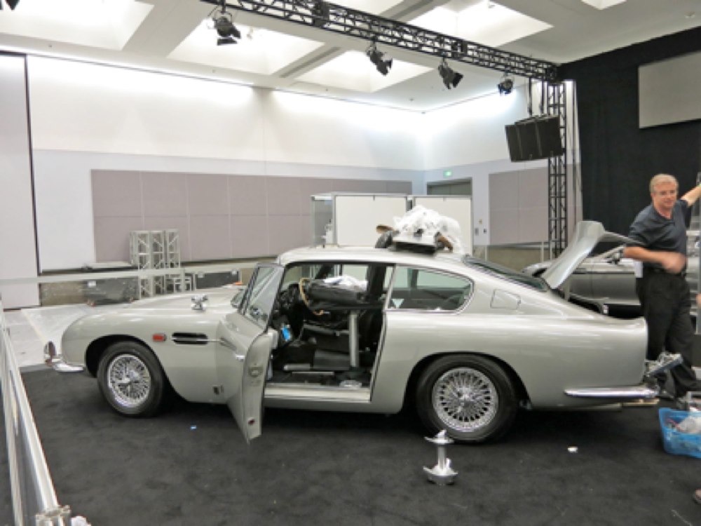 This is an actual Aston Martin DB6 customized with all the toys from the movies Goldfinger, Thunderball and SkyFall.