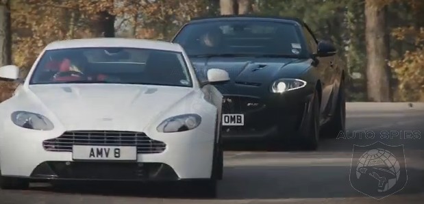This head-to-head, back-to-back test features the Jaguar XKR-S and the Aston Martin V8 Vantage. The power gap is significant as the XKR-S has a significant advantage with 550 horsepower compared to the Aston's 420 ponies. The key is that they're similarly priced at 100,000 British Pounds Sterling.