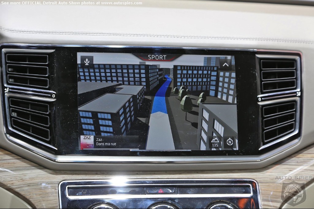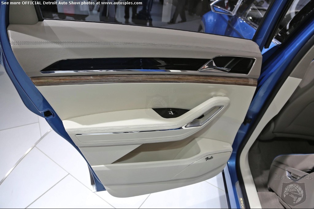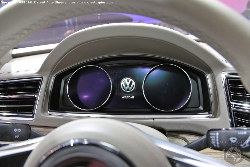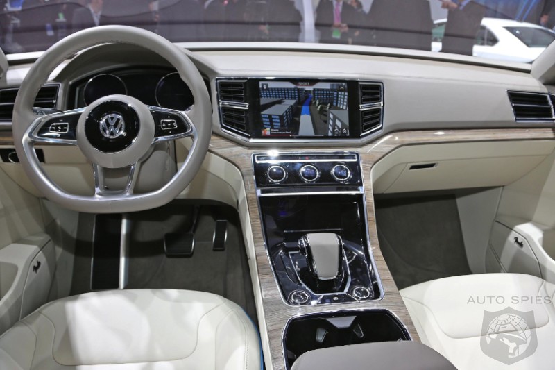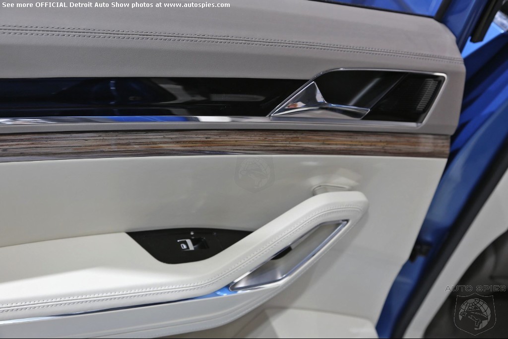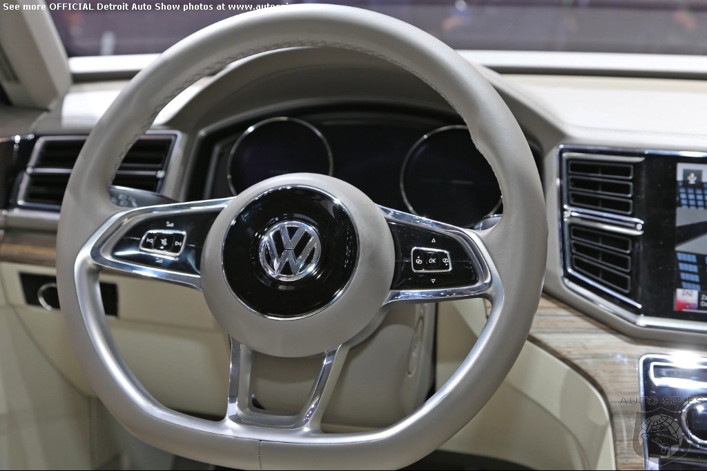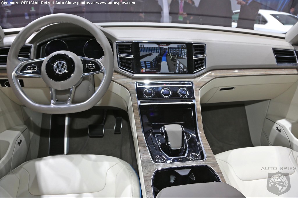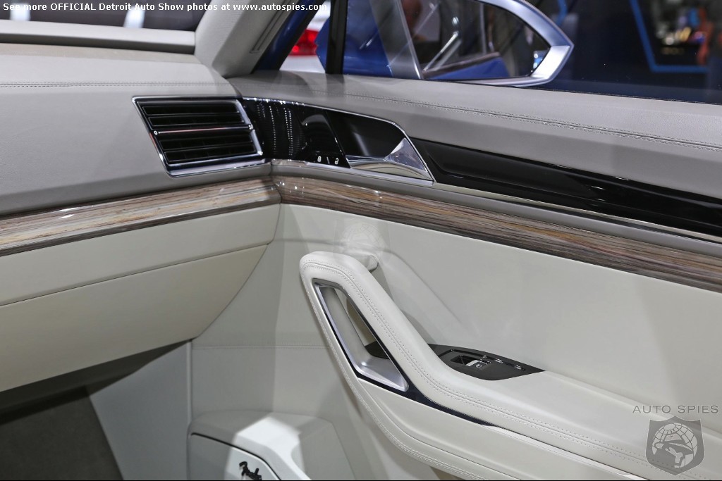 A Volkswagen Made for America Painted in “CrossBlue Glass Flake”, the concept is 196.3 inches long, 79.3 inches wide, and 68.2 inches high. It assumes a very confident stance on the road thanks to wide front and rear tracks of 66.4 and 66.8 inches respectively, 21-inch aluminum-alloy wheels shod with 235/45 tires, and significantly flared wheelarches.
