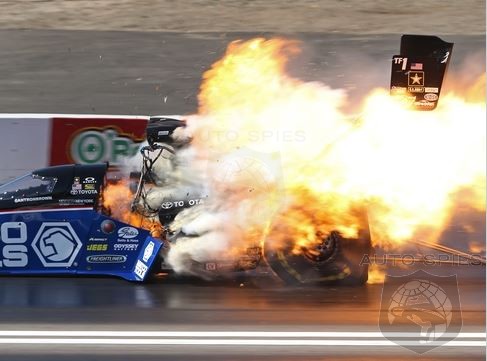 Brown's 300-mph dragster had just reached the finish line ahead of David Grubnic in the second round of final eliminations when the 8,000-horsepower engine on his car exploded.