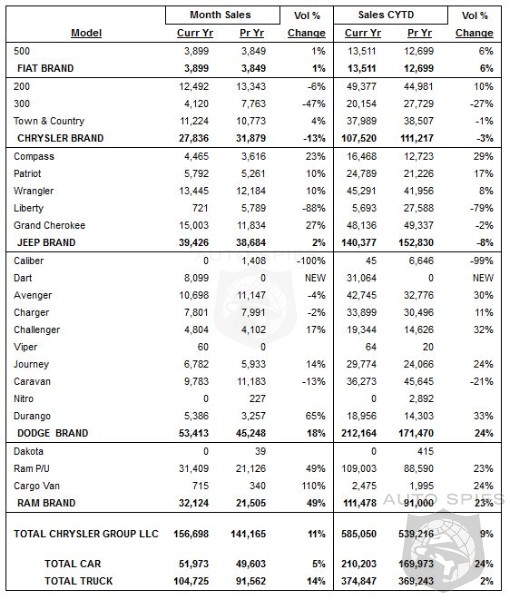 Chrysler Group LLC today reported U.S. sales of 156,698 units, an 11 percent increase compared with sales in April 2012 (141,165 units), and the group's best April sales since 2007.