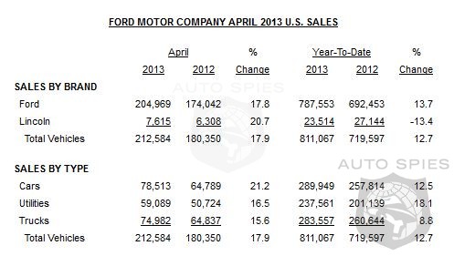 Ford's April sales climbed 18 percent with gains across the portfolio – with cars up 21 percent, utilities up 16 percent, and trucks up 16 percent. Retail sales were up 27 percent.