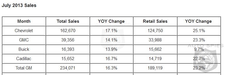 General Motors Co. (NYSE: GM) dealers delivered 234,071 vehicles in the United States in July, up 16 percent compared with a year ago. Retail sales increased 23 percent while fleet sales declined 6 percent. “For GM, July was the most well-balanced month of the year from a retail sales standpoint: trucks were hot, but so were small cars and family vehicles,” said Kurt McNeil, vice president, U.S. sales operations. “Our experience shows that the difference between good sales and great sales in a slow-growth economy is how many new products you have to offer, and we are starting to hit our sweet spot.”