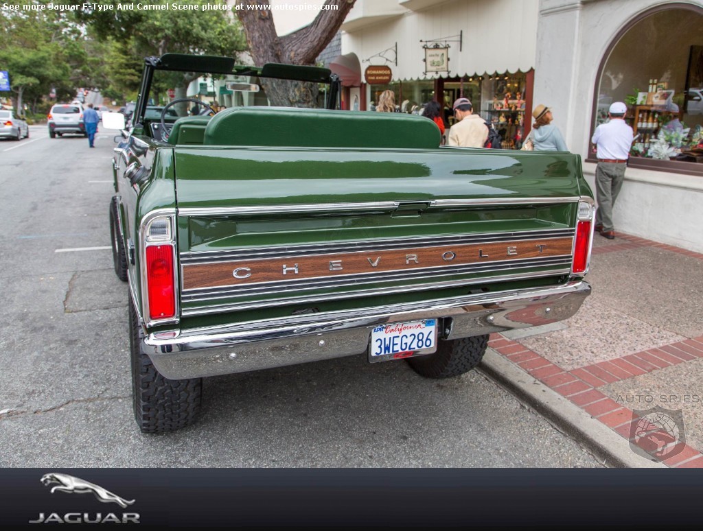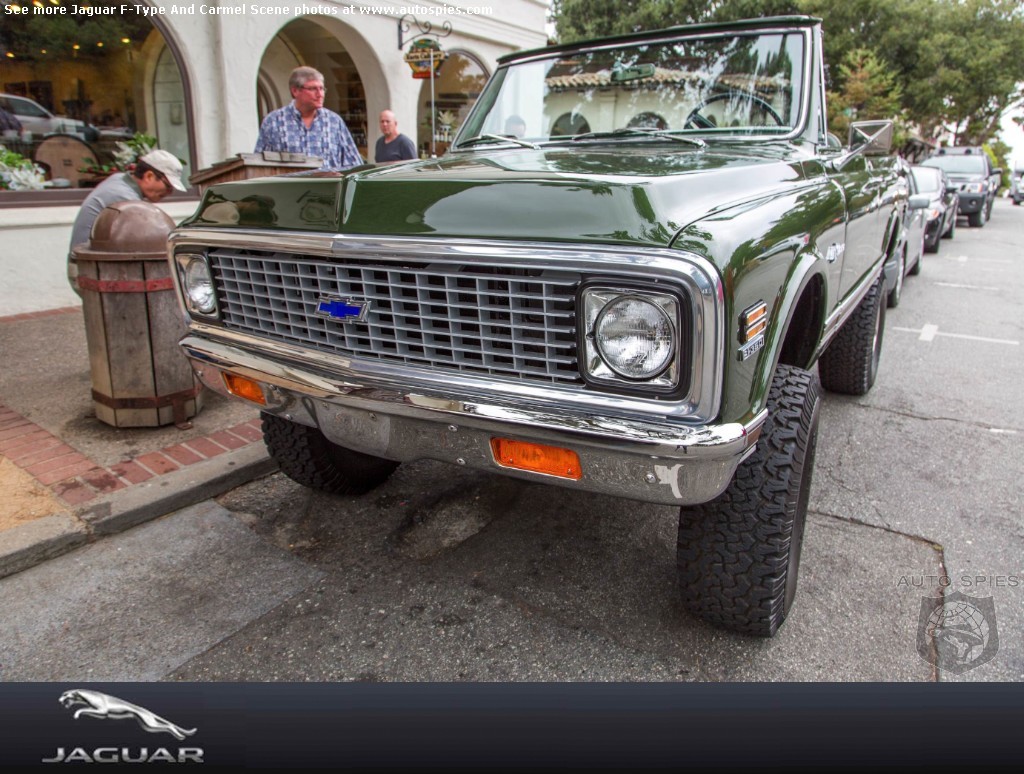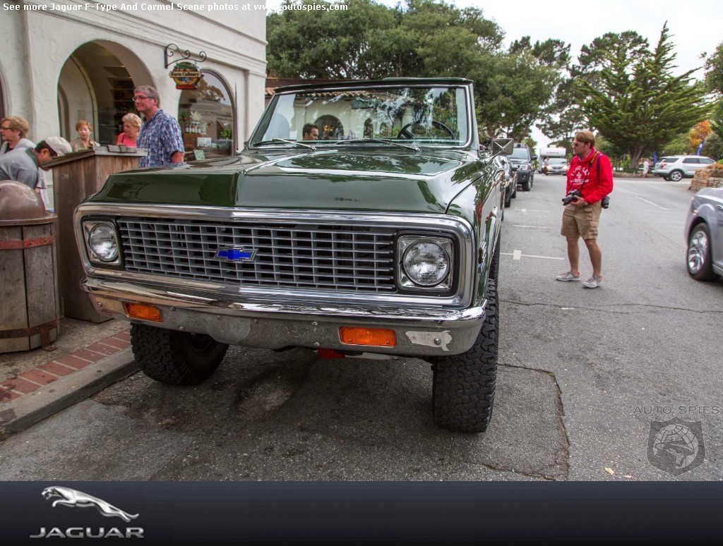 While 001 was in Carmel by the Sea yesterday, it appears he stumbled onto something that's a pretty rare sight these days. It's a Chevrolet K/5 Blazer CST. Though I am no expert, I'll go with it being a '72. There's something about having one of these in California or an urban sprawl like New York City that just seems so rad. It's such a simple truck and with the top off in the right weather you know it's gotta be fun.When I was growing up I had a neighbor across the street from me. The old man cherished his K/5 Blazer and boy it was polished every sunny day. It seemed like that big truck was there forever with Roy and eventually when his kid turned of age it became his. Over the years I saw it get modified and those big tires thrown on it and there was always some sort of appeal to it.Keep checking back for the latest Monterey Weekend updates!AutoSpies.com is ranked #1 by Google for auto show photos.The Monterey Weekend photo galleries are sponsored by Jaguar. Jaguar F-Type and Carmel Scene