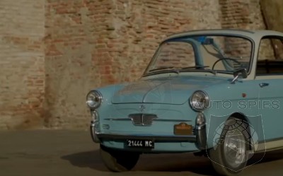 Though there were other vehicles to choose from, like a Porsche or an Alfa Romeo "Duetto," Annalisa chose the teeny tiny Bianchina with 18 horsepower. It can't even surpass 50 km/h.