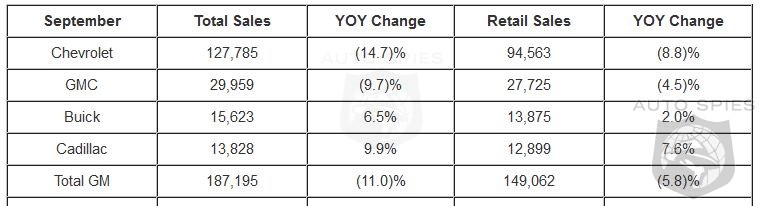 - Third quarter retail sales for GM were up 13 percent and total sales were up 7 percent.