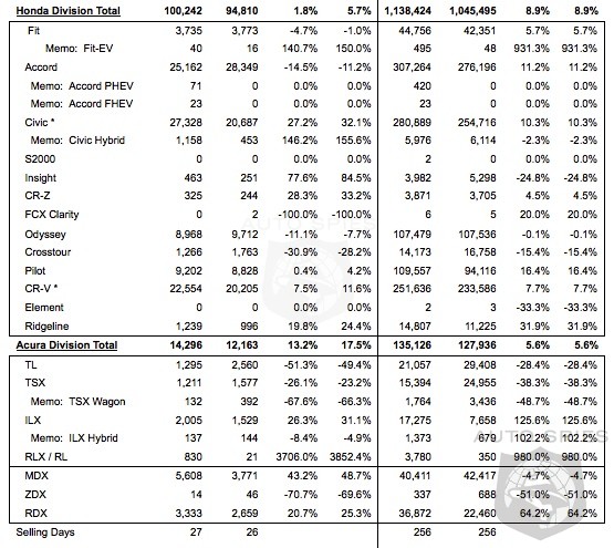 Acura posted October sales of 14,296, an increase of 17.5 percent compared to last October with Acura light trucks recording their best October since 2007