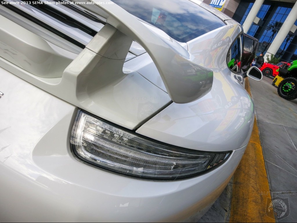 When it comes to modifying a Porsche, to me, things can get a bit tricky. But, since we're at the 2013 SEMA Show, you know that you have ALL of the good and ALL of the bad. And Agent 001 spotted an interesting one for us. He found an all-new Porsche 911 (991) on the street and snapped it as he saw it was lightly modded. The interesting part came when 001 got to the back of this 911 though. That's because this little beauty was equipped with clear taillights. Now this may seem like something small but it completely changes the rear end of the 911. 001 told me he LOVES this look on the 911 and that these lights looked killer. I, on the other hand, am not digging it all that much. It looks a bit too...chintzy. So, 001 and I are leaving it up to YOU: do YOU think these clear taillights are working on the 911 or are they lame?What say you?Keep checking back for the latest breaking news right here on AutoSpies.com!The 2013 SEMA Show photo galleries are sponsored by Lexus. 2013 SEMA Show Photo Gallery
