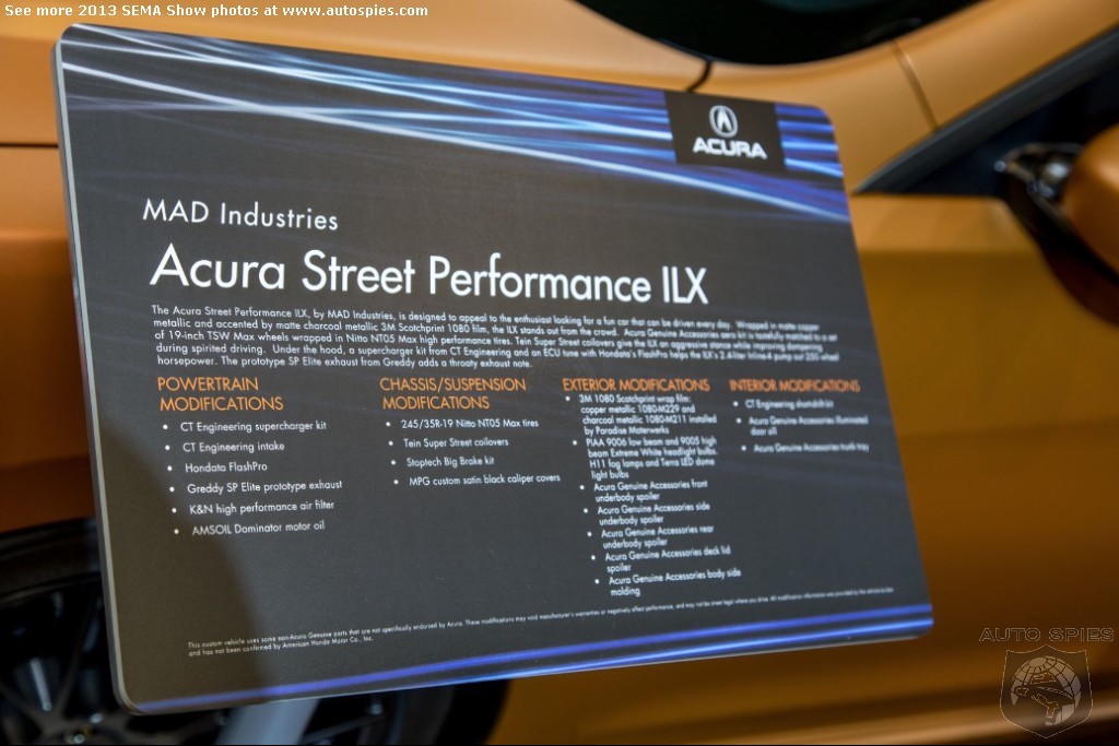"How better to amp up the inherent luxury, excitement and prestige of the Acura Brand than to partner with the enthusiast crowd and create these custom RLX and ILX sedans," said Mike Accavitti, senior vice president of Auto Operations. "SEMA is where we go to add that little bit of spice that brings out the true performance character in our Acura lineup."