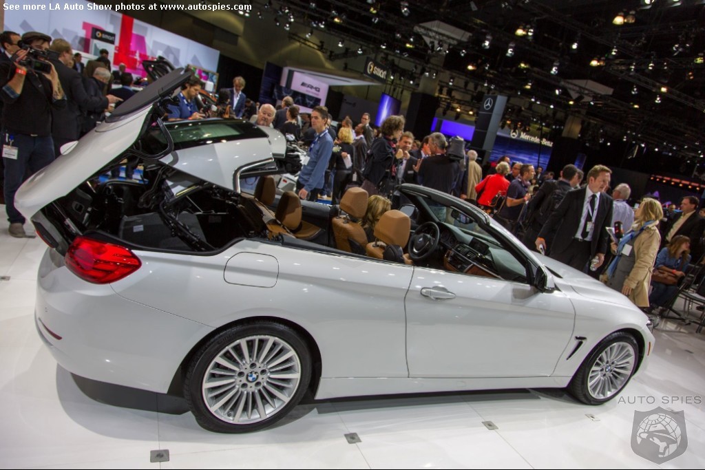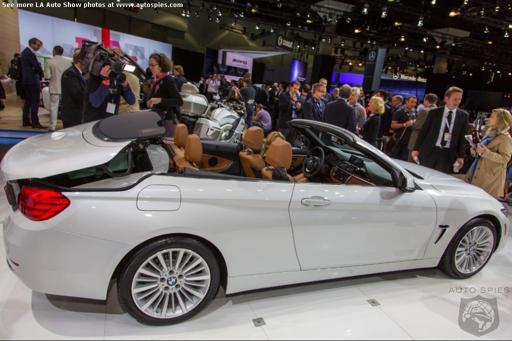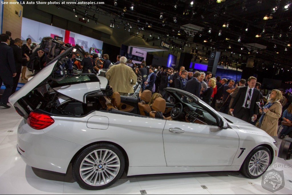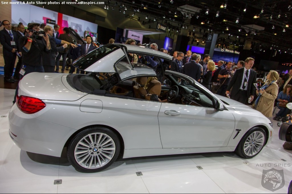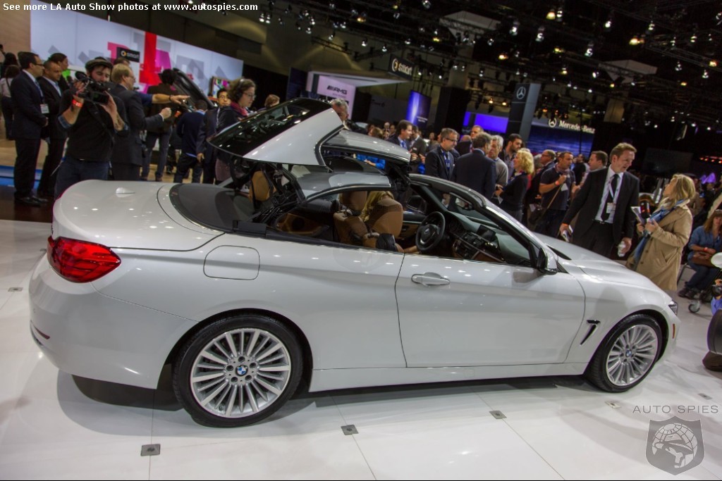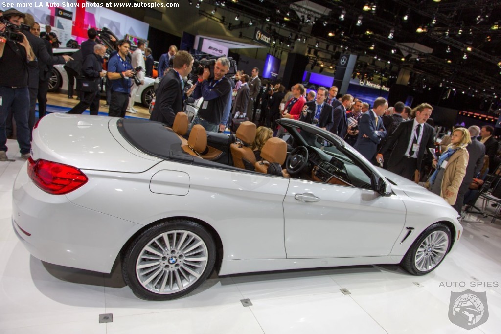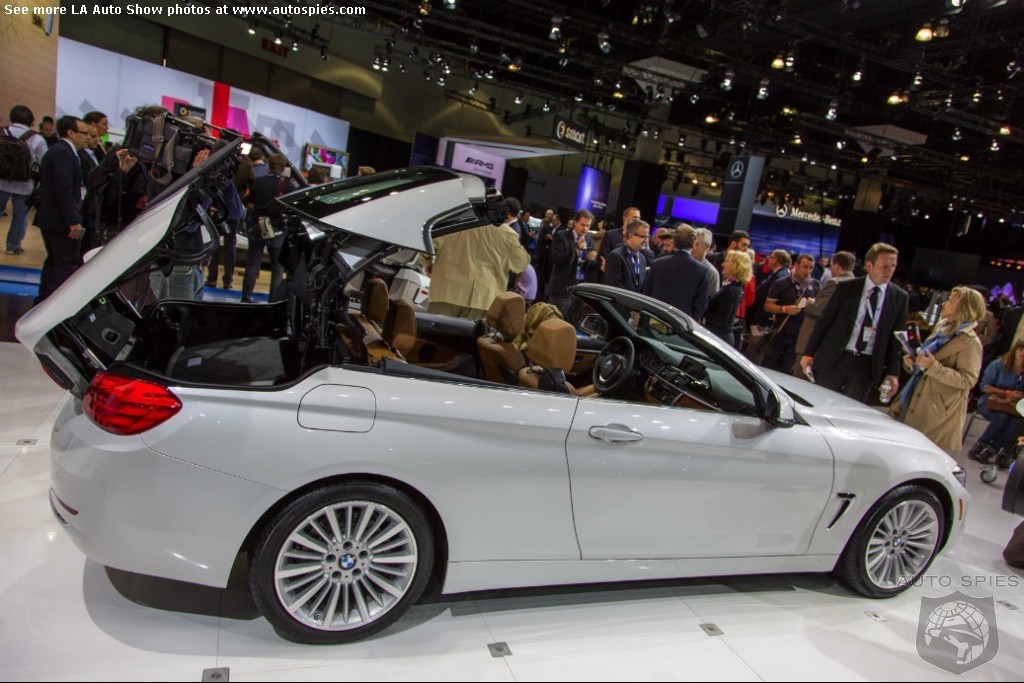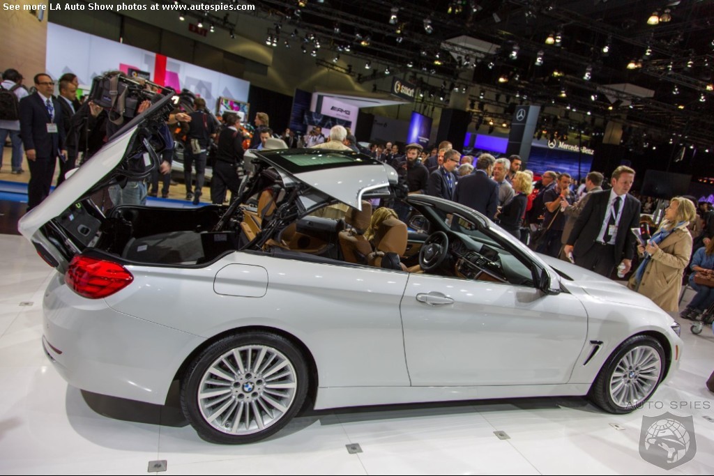 The LA Auto Show has kicked off and we are already in the hunt for the best the show has to offer and to prove it here are the very first shots of the new BMW 4 Series Convertible.Gather what you can from the brief release from BMW and check out the shots below!The 2013 LA Show photo galleries are sponsored by Lexus.Official LA Auto Show Photo GalleryThe world premiere of the BMW 4 Series Convertible marks the beginning of a new era of open-air driving pleasure. Thanks to its specific design vocabulary, the open-top four-seater stands out significantly from mid-range models of the BMW 3 Series. Unique aesthetics and the noticeable increase in size compared to the predecessor model give the BMW 4 Series Convertible an expressive presence. The three-part, folding hardtop guarantees the highest degree of everyday suitability all year round. When closed, it offers enhanced acoustic comfort and opens in less than 20 seconds at the push of a button. At market launch, there will be a choice of a straight six-cylinder petrol engine, a four-cylinder petrol engine and a four-cylinder diesel power unit with an output ranging from 135 kW/184 hp to 225 kW/306 hp. Official LA Auto Show Photo Gallery
