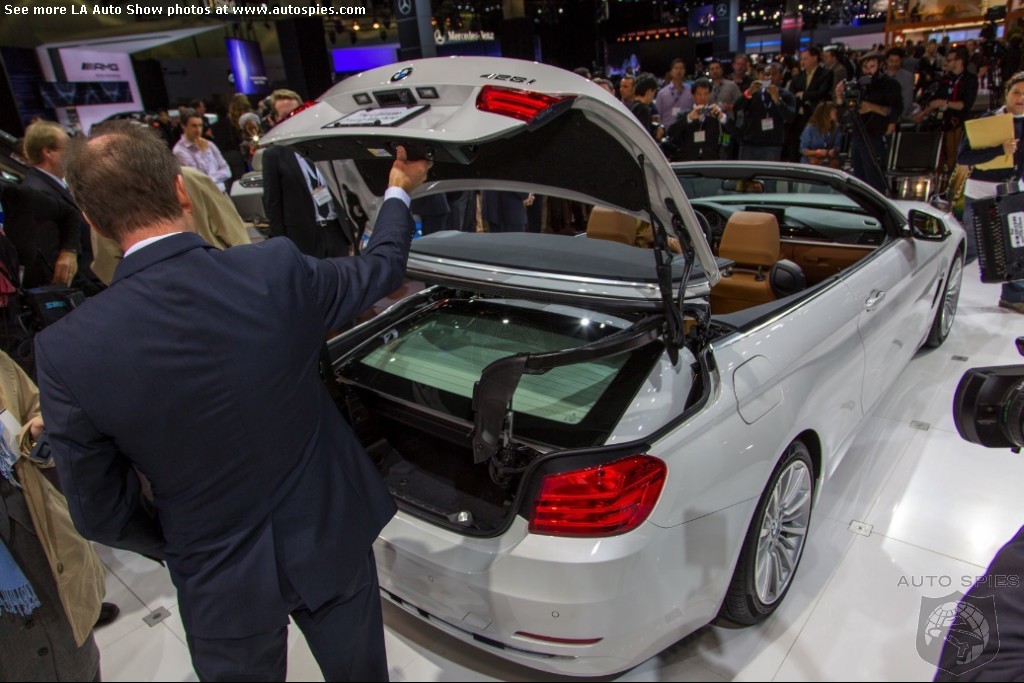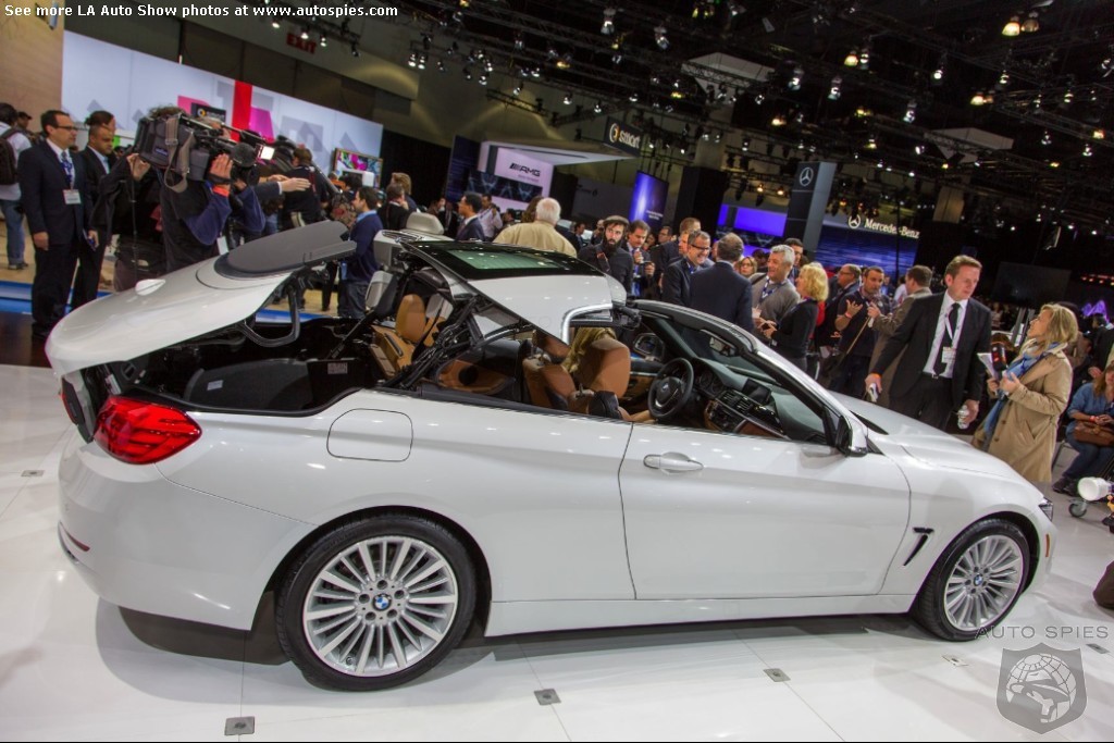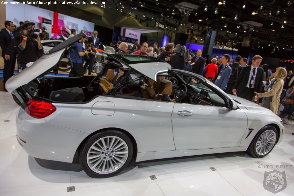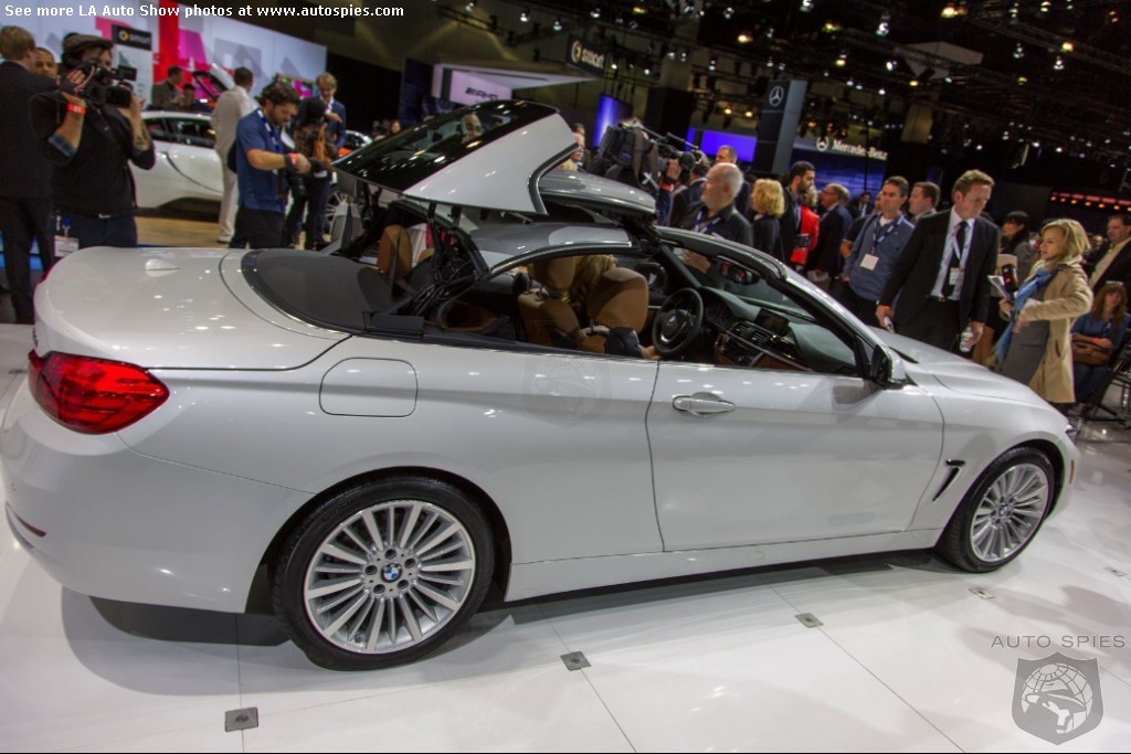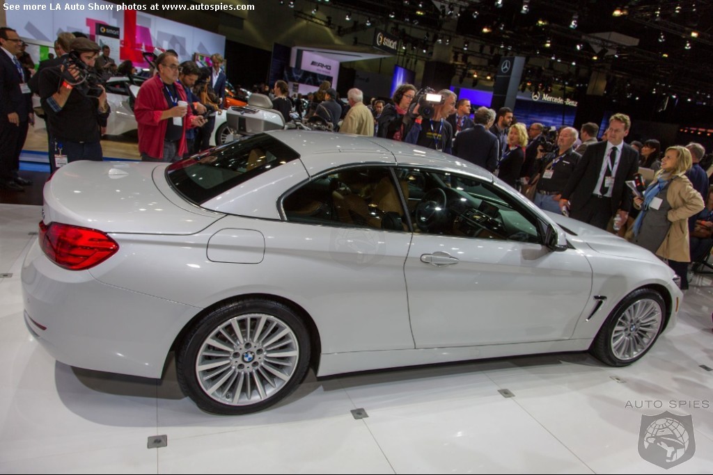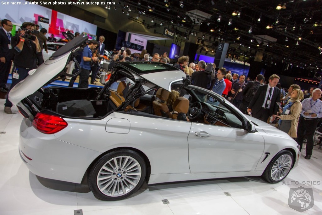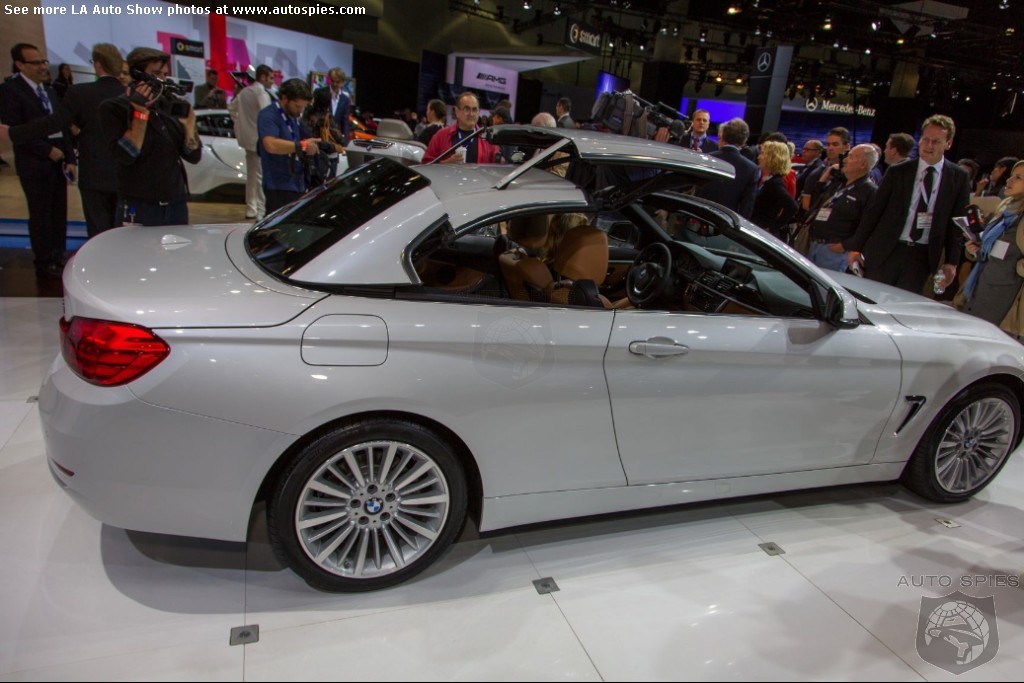 The LA Auto Show has kicked off and we are already in the hunt for the best the show has to offer and to prove it here are the very first shots of the new BMW 4 Series Convertible.Gather what you can from the brief release from BMW and check out the shots below!The 2013 LA Show photo galleries are sponsored by Lexus.Official LA Auto Show Photo GalleryThe world premiere of the BMW 4 Series Convertible marks the beginning of a new era of open-air driving pleasure. Thanks to its specific design vocabulary, the open-top four-seater stands out significantly from mid-range models of the BMW 3 Series. Unique aesthetics and the noticeable increase in size compared to the predecessor model give the BMW 4 Series Convertible an expressive presence. The three-part, folding hardtop guarantees the highest degree of everyday suitability all year round. When closed, it offers enhanced acoustic comfort and opens in less than 20 seconds at the push of a button. At market launch, there will be a choice of a straight six-cylinder petrol engine, a four-cylinder petrol engine and a four-cylinder diesel power unit with an output ranging from 135 kW/184 hp to 225 kW/306 hp. Official LA Auto Show Photo Gallery