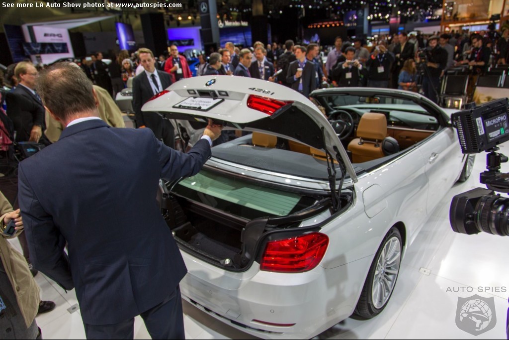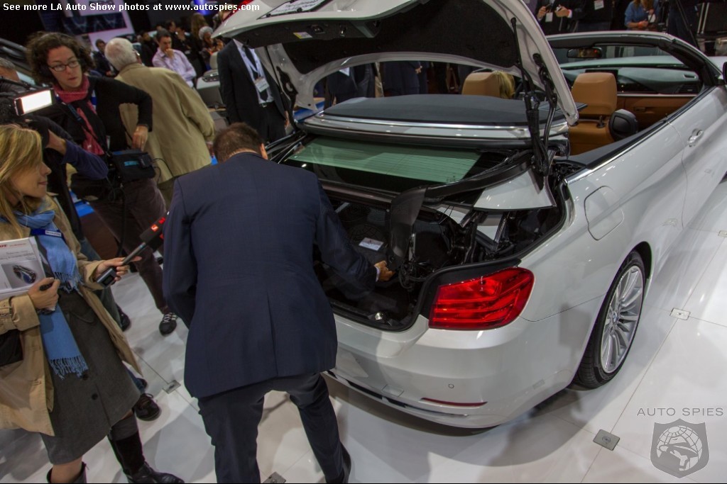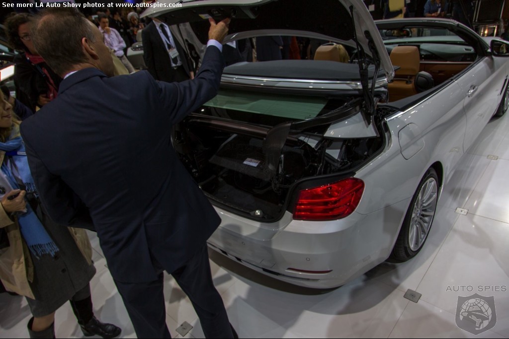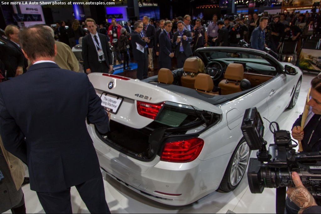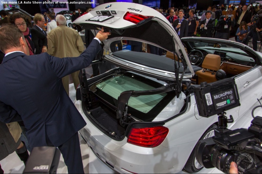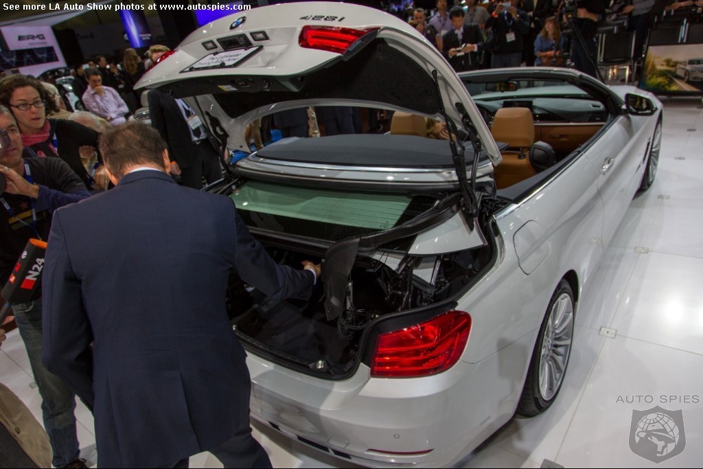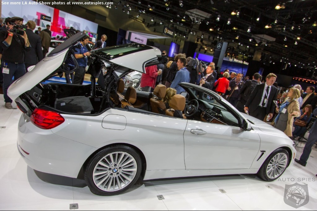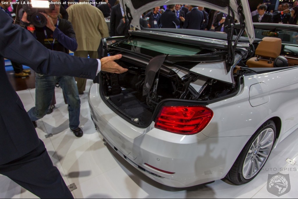 The LA Auto Show has kicked off and we are already in the hunt for the best the show has to offer and to prove it here are the very first shots of the new BMW 4 Series Convertible.Gather what you can from the brief release from BMW and check out the shots below!The 2013 LA Show photo galleries are sponsored by Lexus.Official LA Auto Show Photo GalleryThe world premiere of the BMW 4 Series Convertible marks the beginning of a new era of open-air driving pleasure. Thanks to its specific design vocabulary, the open-top four-seater stands out significantly from mid-range models of the BMW 3 Series. Unique aesthetics and the noticeable increase in size compared to the predecessor model give the BMW 4 Series Convertible an expressive presence. The three-part, folding hardtop guarantees the highest degree of everyday suitability all year round. When closed, it offers enhanced acoustic comfort and opens in less than 20 seconds at the push of a button. At market launch, there will be a choice of a straight six-cylinder petrol engine, a four-cylinder petrol engine and a four-cylinder diesel power unit with an output ranging from 135 kW/184 hp to 225 kW/306 hp. Official LA Auto Show Photo Gallery