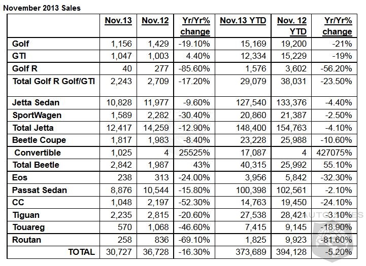 Volkswagen of America, Inc. (VWoA) today reported 30,727 units delivered in November and 373,689 units year-to-date. November sales achieved the second highest level since 1973. Adjusted for models in run-out, Volkswagen’s year-to-date pace is on par with the prior year-to-date pace.