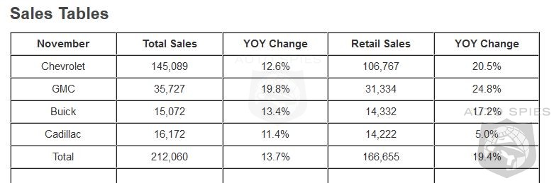“November sales were strong at all four of our brands, and demand was robust for everything from cars to crossovers to the industry’s newest and best full-size pickups,” said Kurt McNeil, vice president, U.S. sales operations. “The sheer number of award-winning new models we have helped us grow faster than the industry for the second month in a row.”