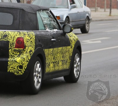 Did you hear that? It was the sound of thousands of teenage girls shrill screams at the sight of the all-new MINI Cooper Convertible, spotted here for the first time. It's just that damn cute. Anyhow, this is the first time we're seeing the all-new MINI in drop-top form and all should be pretty predictable from here on out. The motors and interior will be identical, as well as the fun factor. Some of the most fun I've had behind the wheel was in a Cooper S JCW Convertible — the exhaust that cracks and bangs on the overrun is just SO lovable. Word on the street suggests we'll get our first look at a production ready vehicle at this September's Paris Motor Show. We'll relay more news as it comes in.**For the FULL collection of spy photos, click "Read Article!"...It will be the second of four initial models to launch in the new Mini lineup, following the three-door hatchback and ahead of the five-door hatch and Clubman models, which both arrive in 2015. Both of those models have also been spotted testing.Like the other models in the range, the Mini Convertible is based on the versatile UKL1 platform. The car retains its folding soft-top roof and four-seat cabin, though updates to the interior to bring it in line with the hatchback are expected...Official LA Auto Show Photo Gallery Read Article