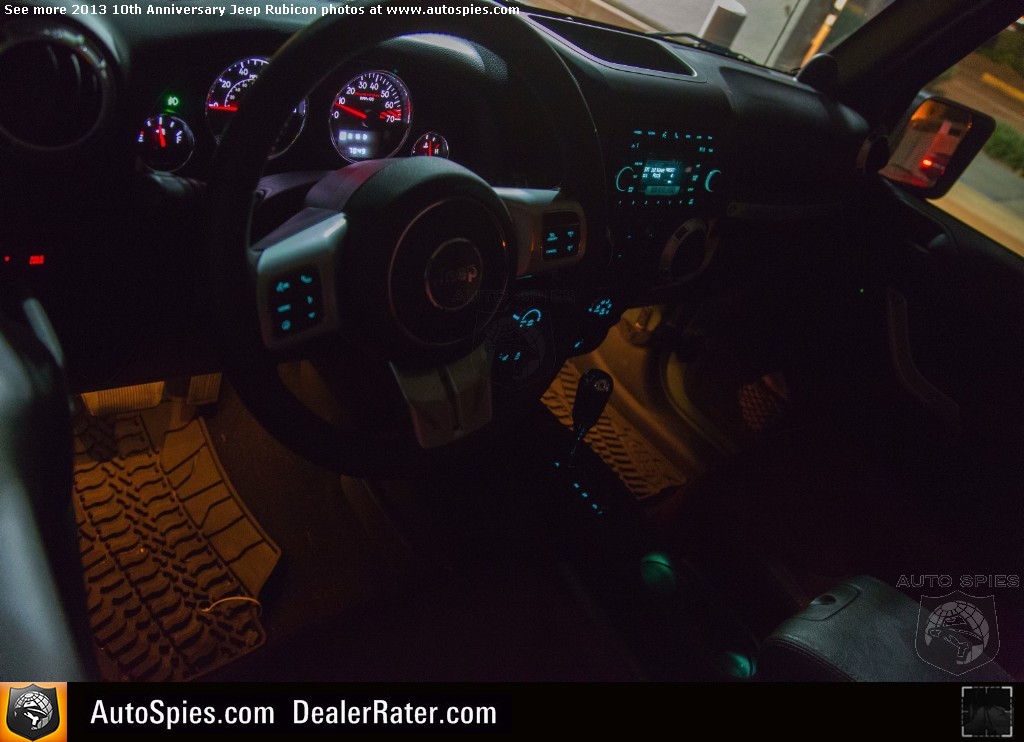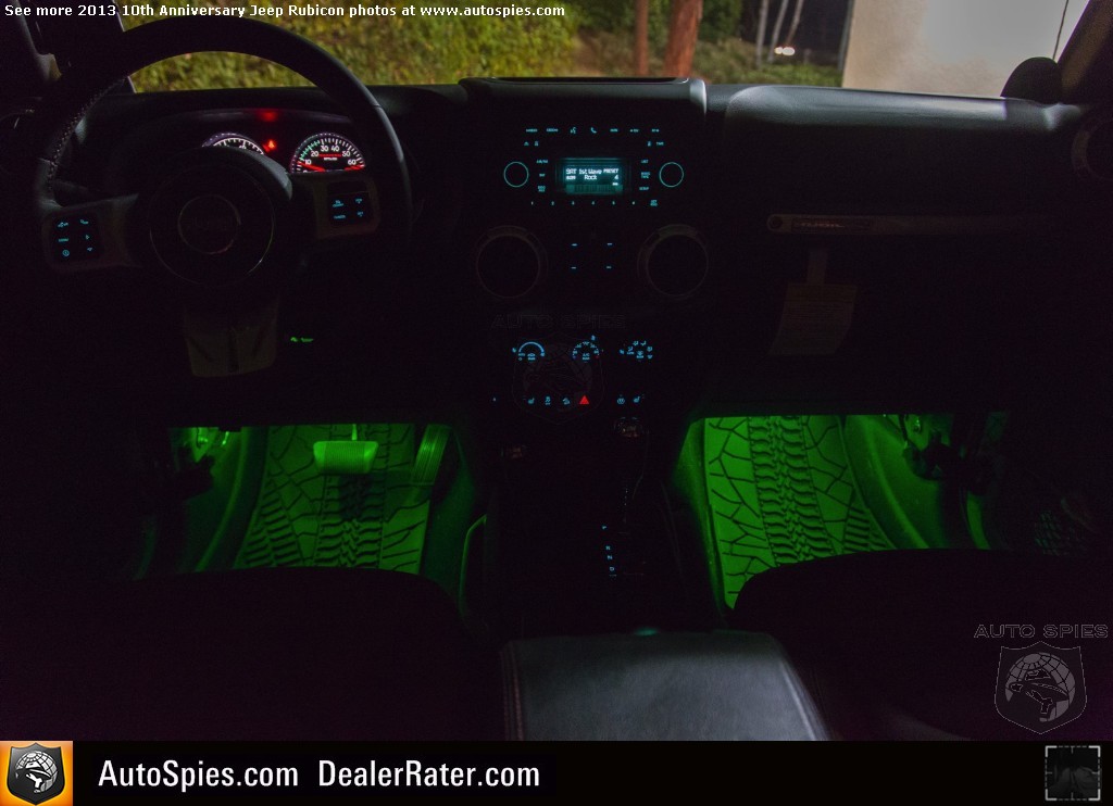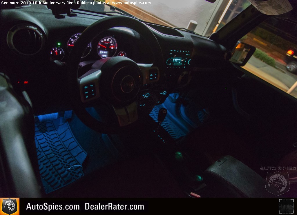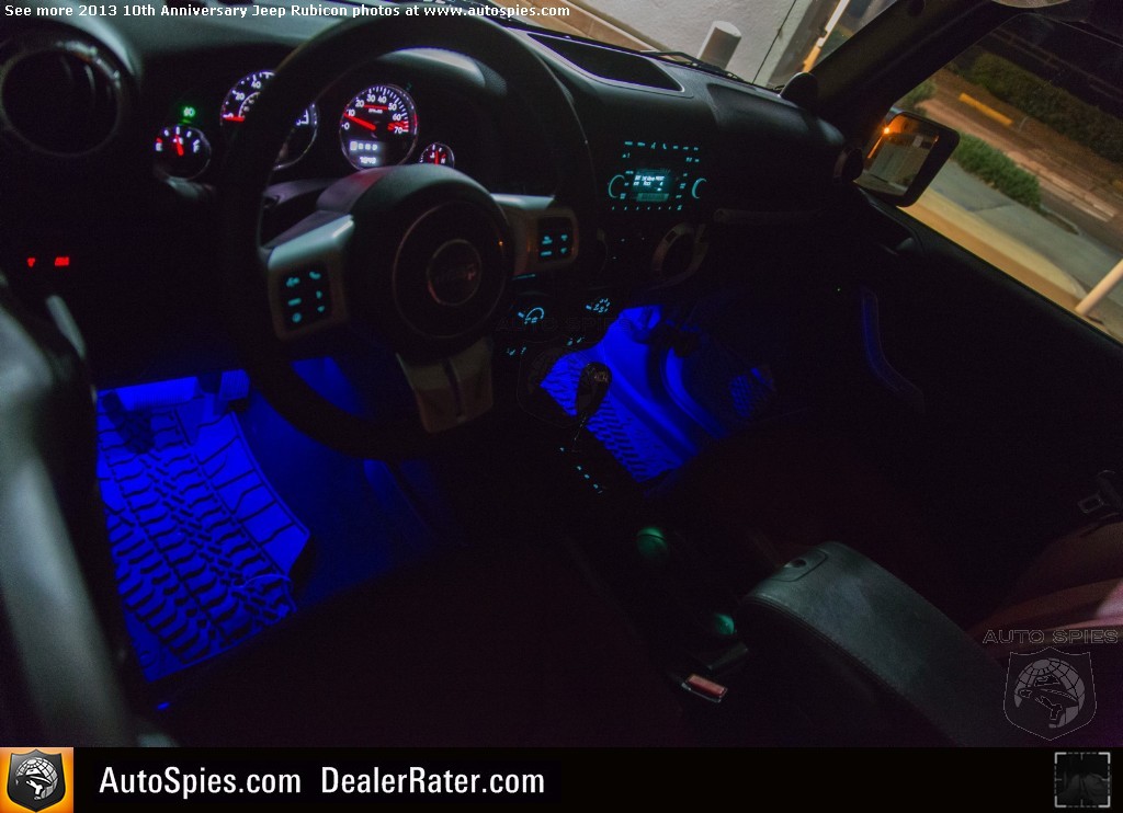 Over the Christmas holiday I decided to finally get a couple things added to my 2013 Jeep Wrangler Unlimited Rubicon 10th Anniversary edition.One is a common addition that a lot of Jeeper's do but the other is something I never knew was available for the Wrangler.2013 Jeep Wrangler Unlimited 10th Anniversary Edition Photo GalleryAnd I'm sure most Wrangler owners don't know either.1. Special Warn Winch 10th Anniversary Edition with Red Fairlead and Red Hook2. Mopar Interior Ambient Lighting KitI saw the ambient light kit in a Mopar brochure in the waiting room of my Jeep dealer, Orange Coast Auto in Capistrano so I called my friends at Chrysler and had them send me one.And I think you'll see in the photos which by the way are the first ones I've ever seen of one of these kits installed in a Wrangler that it's pretty cool.There is a little switch that I had them mount below the drivers dash and all you do is push it to activate it and continue pushing it to cycle through the color choices. There are two levels of brightness on each color.Colors are Red, Gold, Blue, Purple, Fuscia, Green and White light.The kit retails for around $325 (plus labor) and I think it is well worth it. Makes the Wrangler look even cooler at night.2014 San Diego Auto ShowSpecial thanks to Chrysler, Mopar, Warn Industries and Orange Coast Auto Of Capistrano for the parts and labor
