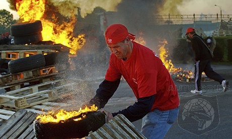 Workers occupied the factory and are burning tires outside the plant, putting the area under a cloud of black smoke, a spokesman for the local authority said.