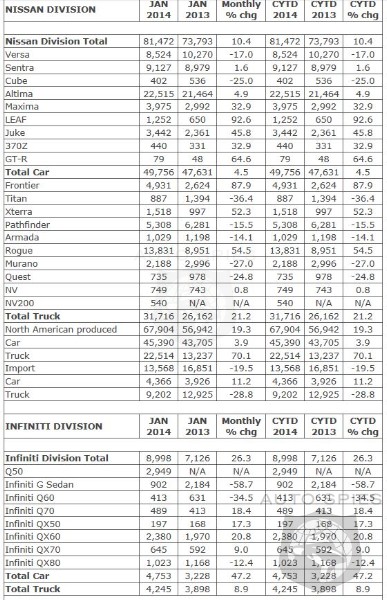 Nissan Group announced today total U.S. sales for January 2014 of 90,470 units, an increase of 11.8 percent compared to last year.Nissan Division highlights: